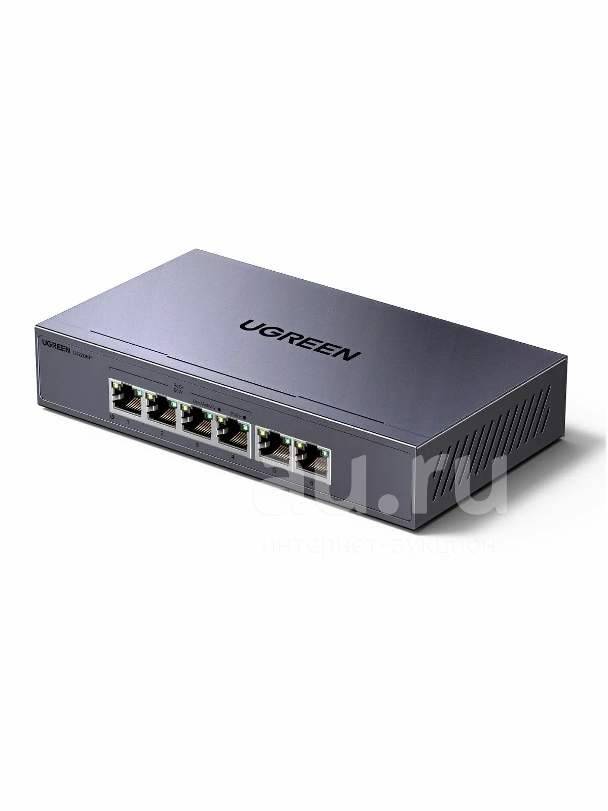 78 080руб.Коммутатор сетевой UGREEN CM741 (35371EU) 6-Port 4*PoE&2*Gigabit Por...