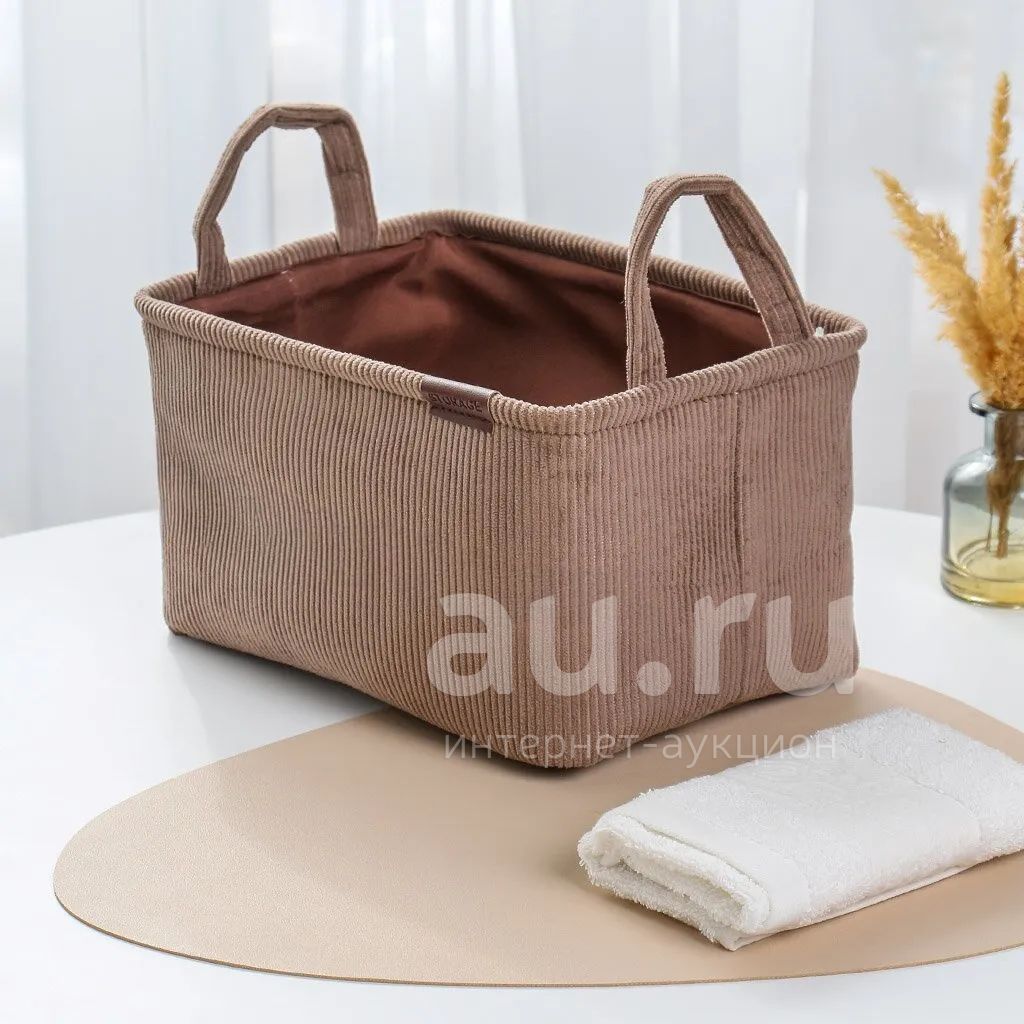 Универсальная корзина для хранения 30×20×16 см из коричневого вельвета с ручками — компактное и стильное решение для дома, дачи и организации пространства.