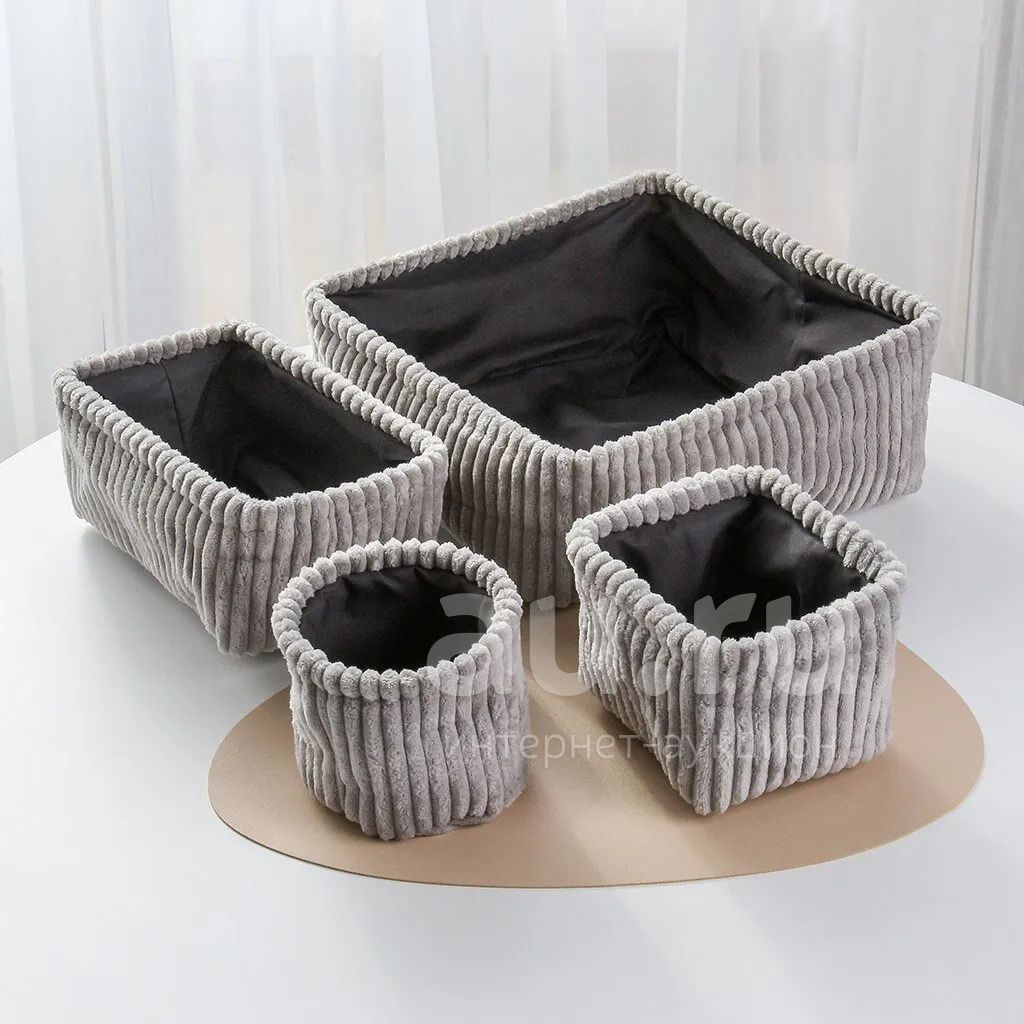 Набор корзин из фланели (4 шт, серый, складные, 30х30х12 см и др.) — стильное и практичное хранение для дома, дачи и подарка. Удобно организуйте пространство без лишних затрат.