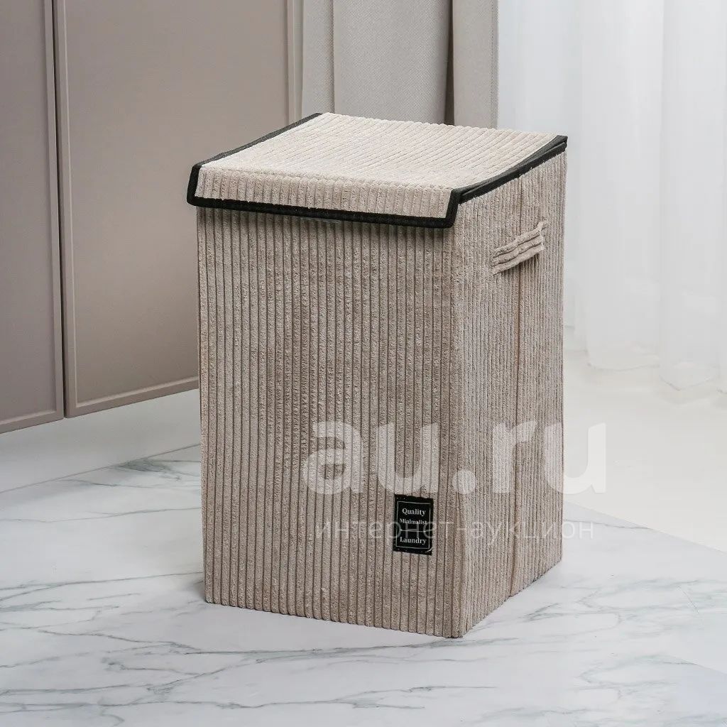 Большая корзина для хранения 33×33×53 см с крышкой из серой фланели: стильное решение для порядка в доме, на даче и в детской. Складная, с ручками — легко перемещать!