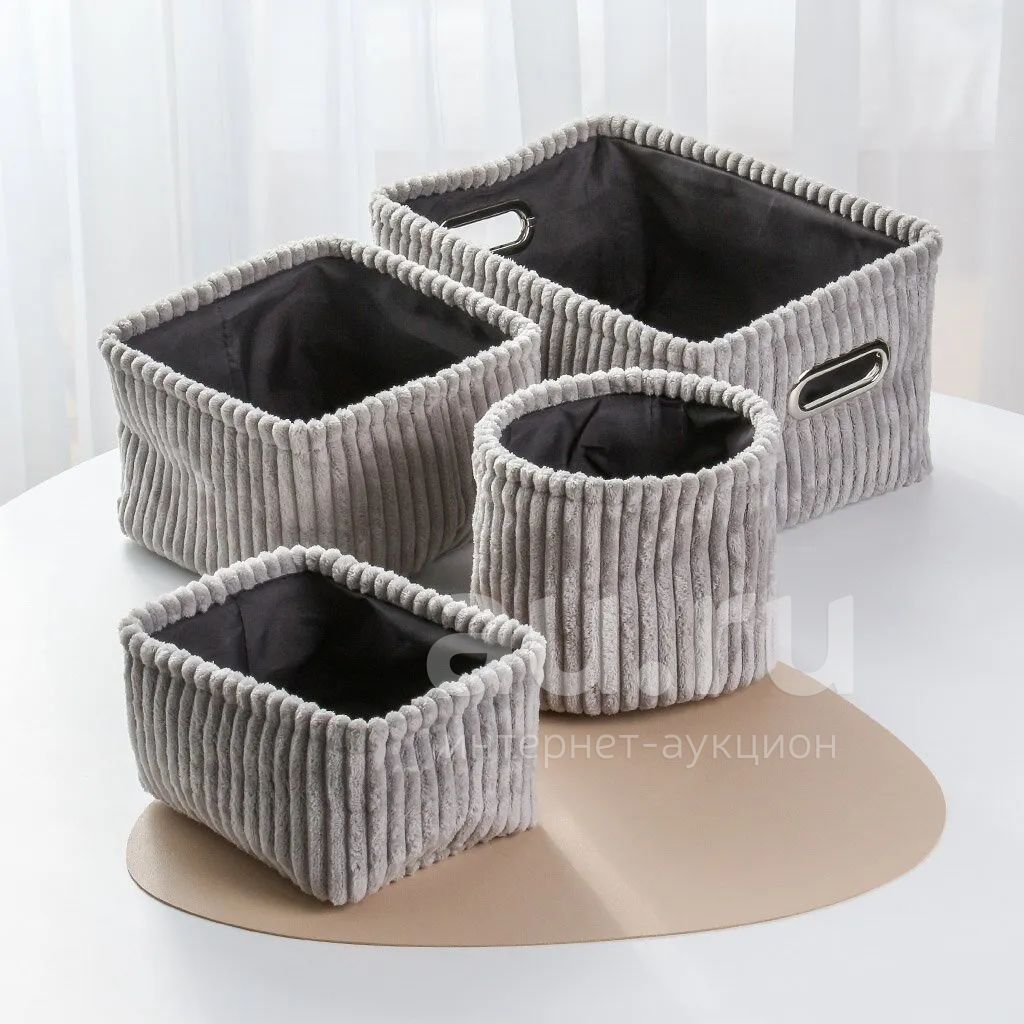 Набор универсальных корзин для хранения 4 шт: компактное решение для порядка в доме и на даче. Серый фланель, складная конструкция, 4 размера — экономьте место и время.