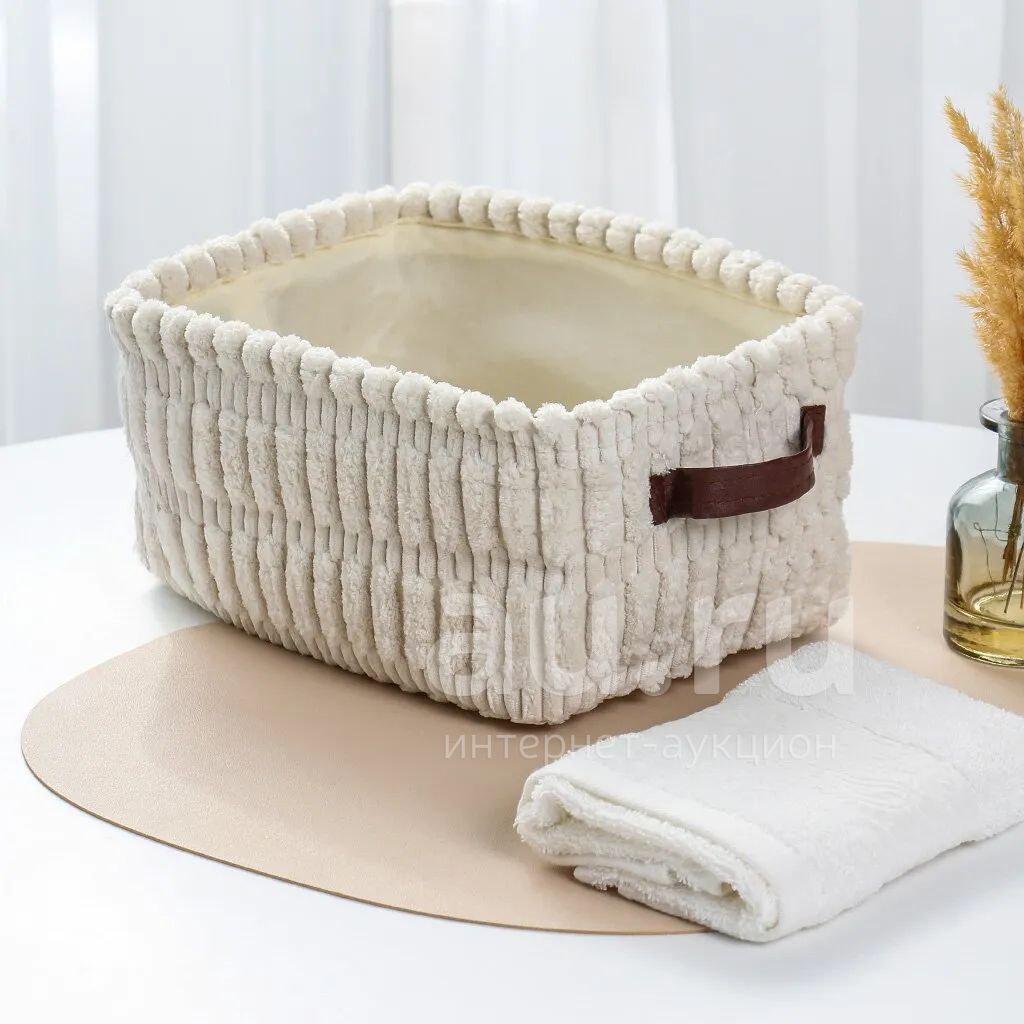 Корзина для хранения 26×18×13 см из белой фланели — стильный порядок в доме, универсальное решение для хранения вещей, игрушек, аксессуаров. Лёгкая, складная, с ручками.