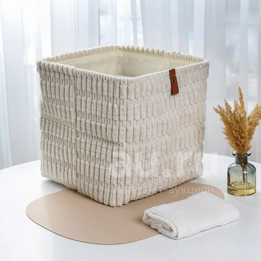 Стильная белая корзина для хранения 30х30х30 см из мягкой фланели: порядок в доме, уют и удобство — решение для спальни, детской или дачи.