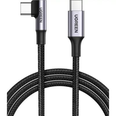Кабель UGREEN US334 USB-C 2.0 to Angled USB-C Braided Cable With Aluminium Shell: 2м, черный