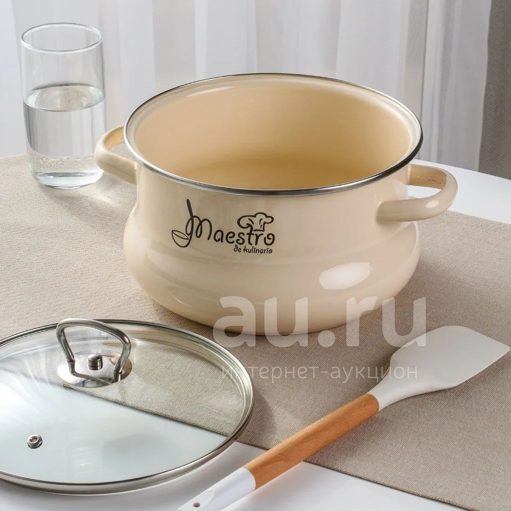 Кастрюля эмалированная СтальЭмаль Маэстро 4 л: универсальное решение для индукции, супов и каш. Безопасное стекло, стиль «слоновая кость», выгодно купить онлайн.