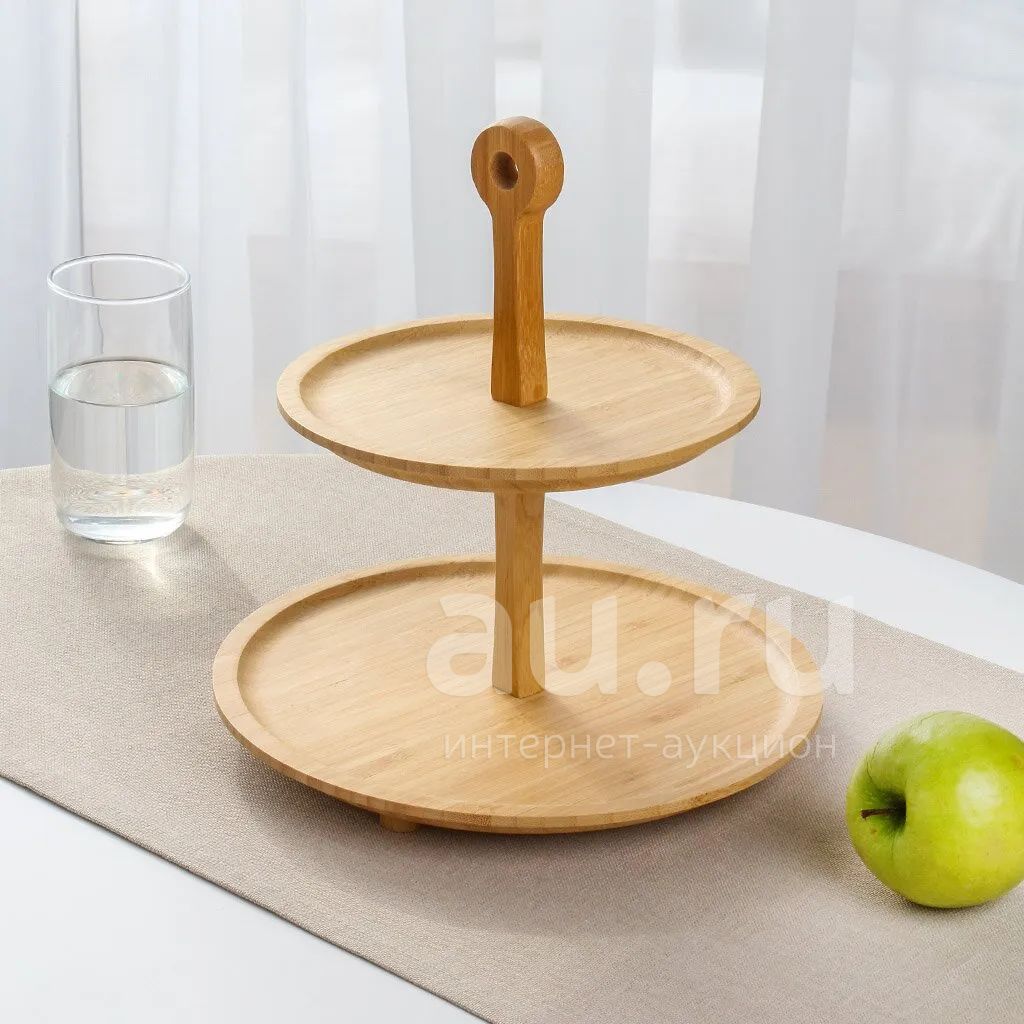Менажница бамбук Daniks 26x27 см, 2 яруса: стильная сервировка для дома и дачи, натуральное дерево, универсальный размер, выгодная цена.