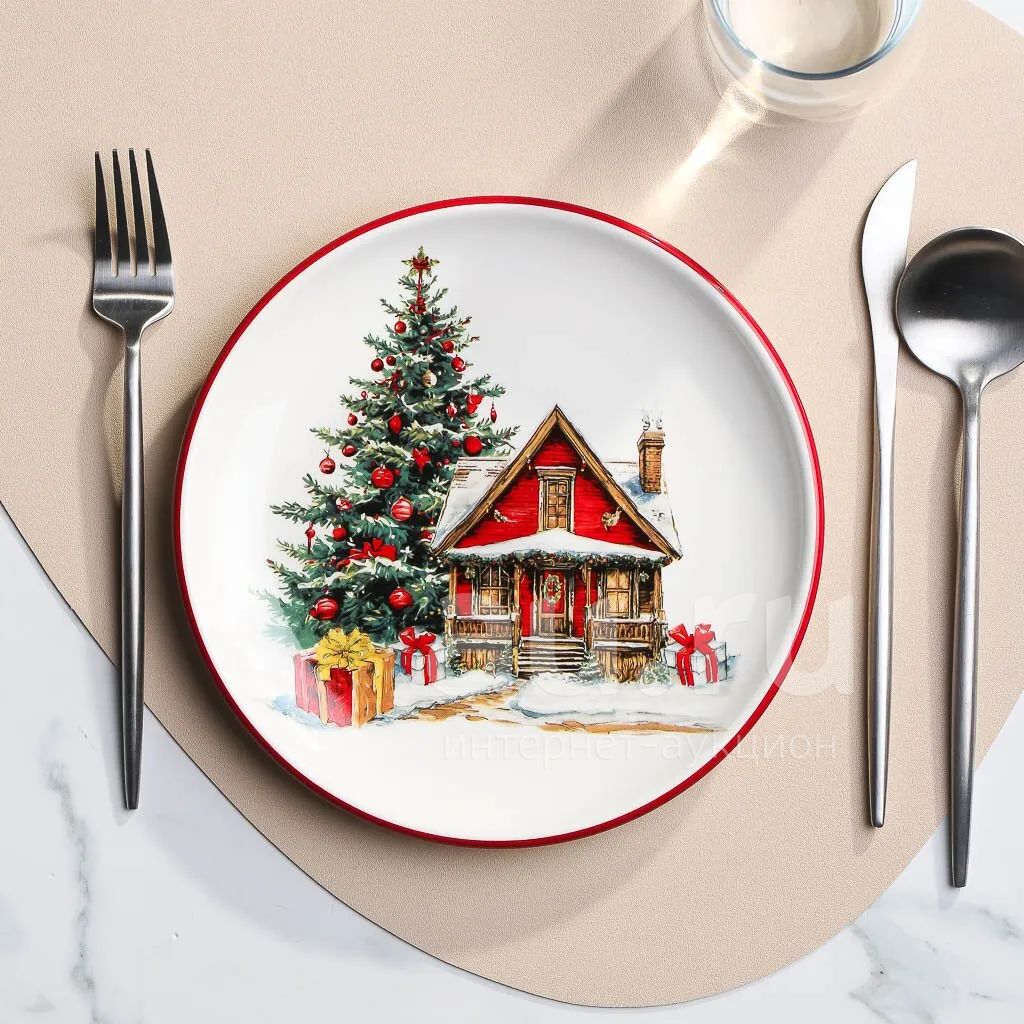 Тарелка Daniks «Уютный дом» из доломита 21 см: стильный новогодний акцент для сервировки, идеальна для подарка и уютных семейных ужинов.