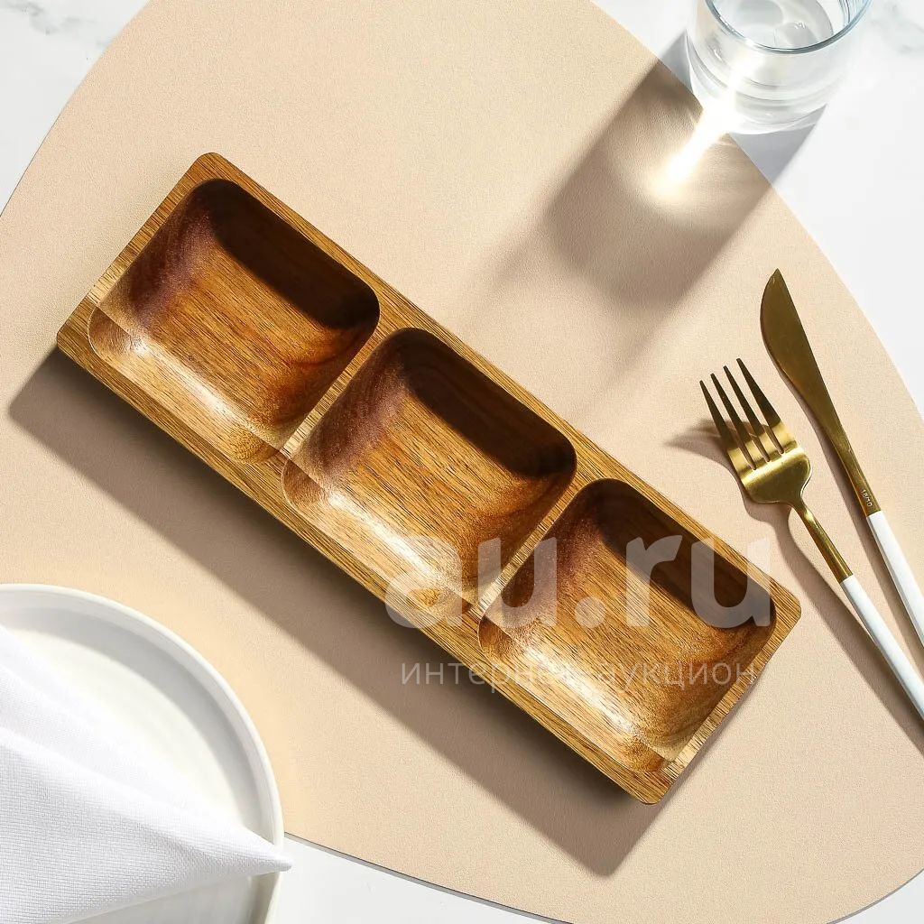 Менажница из акации 30х10 см на 3 секции Daniks: стильная сервировка, натуральное дерево, универсальное решение для дома, дачи и подарка.