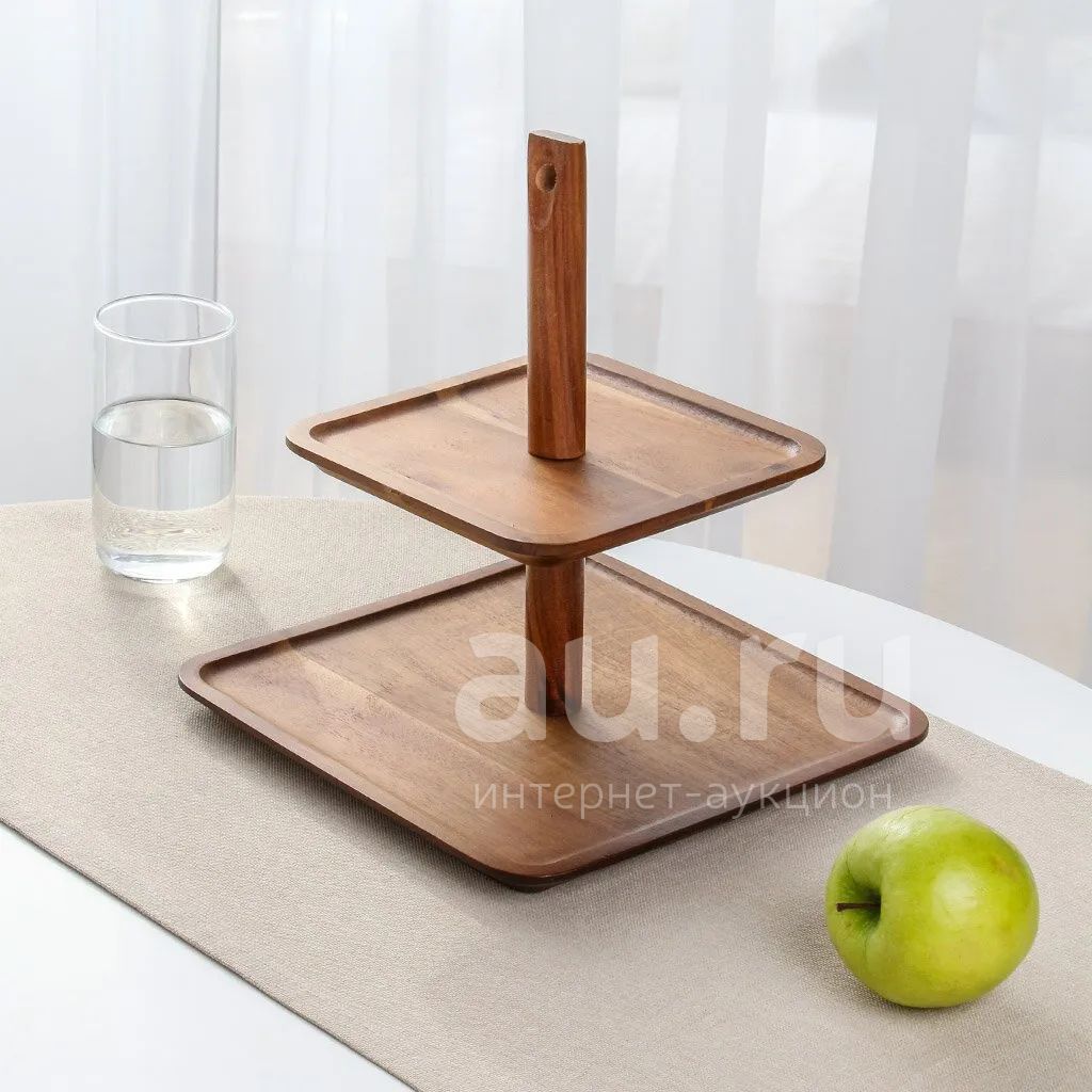 Менажница из акации Daniks 2-ярусная 25x25x27 см: стильная сервировка, натуральное дерево, идеальный подарок для дома и дачи по выгодной цене.