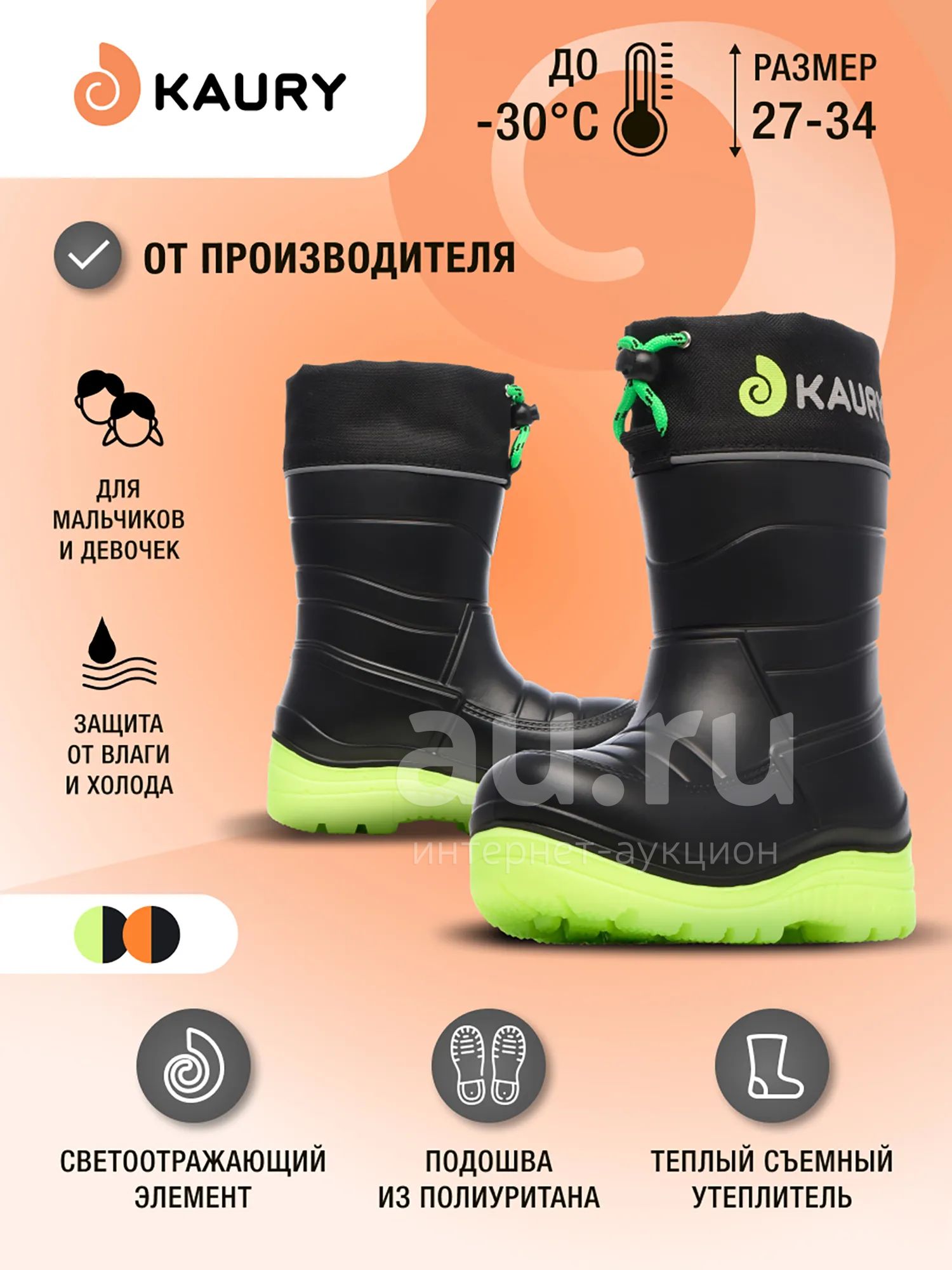 9 240руб.Сапоги непромокаемые утепленные детские KAURY, Черный