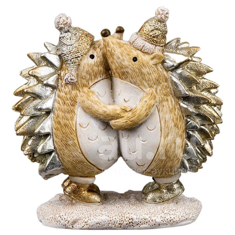 Два влюбленных ежика отличаются тонко прорисованными деталями. Изделие покрыто сверкающей золотой и серебряной краской. Милый сувенир отлично впишется в любой интерьер и поможет создать атмосферу волшебства и уюта. Групповая упаковка предназначена только