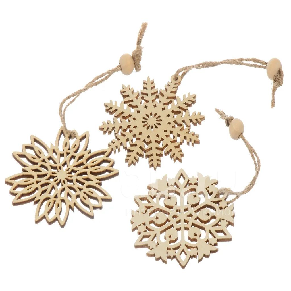 Набор елочных украшений из дерева: 24 небьющиеся снежинки 7 см для стильного декора дома, дачи и подарков — экологично, недорого, безопасно.