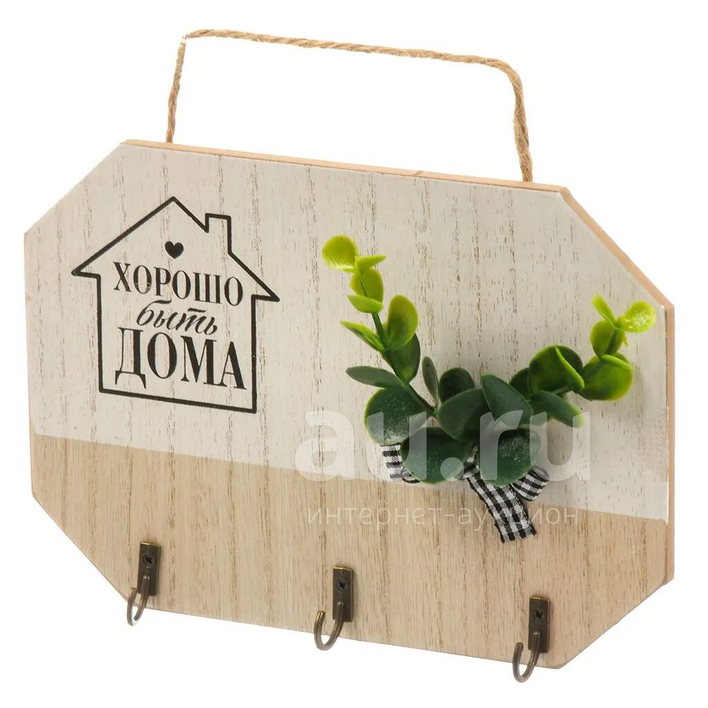 Ключница "Уютный дом" 20х14 см: стильное хранение ключей, компактный размер, 3 металлических крючка — порядок и уют в прихожей за одну покупку.