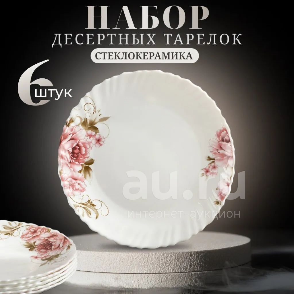 Тарелки десертные Daniks Анжелика — стильный набор из 6 стеклокерамических тарелок 19 см с цветочным орнаментом: идеальный выбор для сервировки, подарка и дачи.
