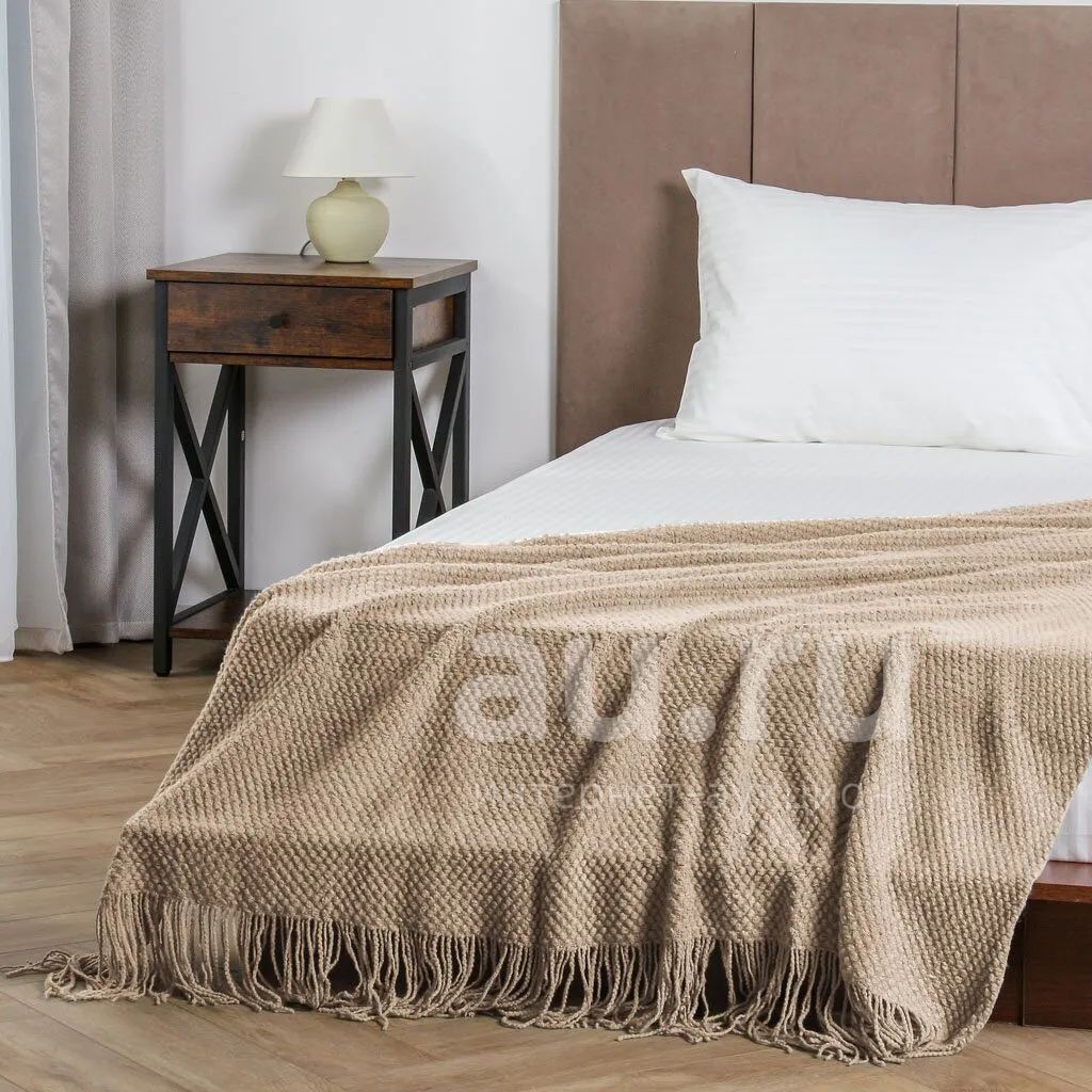Плед 1.5-спальный, 127х170 см, вязаный, 100% полиэстер, Silvano, Теплые объятия, бежевый, однотонный, A120041