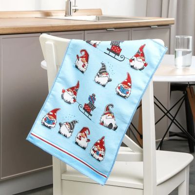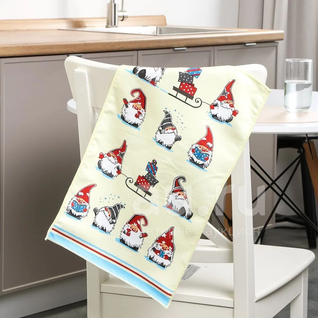 Кухонное махровое полотенце 30х50 см с новогодними гномами — стильный акцент для уюта, быстро впитывает влагу, легко стирается, идеальный подарок к празднику.