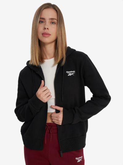 Толстовка Reebok идеально впишется в твой гардероб, если ты предпочитаешь спортивный стиль. Благодаря прямому крою ты сможешь двигаться так свободно, как привыкла. Изделие сидит настолько идеально, что кажется, будто его шили специально для тебя. В составе ткани преобладает натуральный хлопок. Именно он делает модель такой мягкой и воздухопроницаемой. Ненастная погода не повод для отмены планов! Для таких случаев предусмотрен капюшон, который защитит голову от ветра.