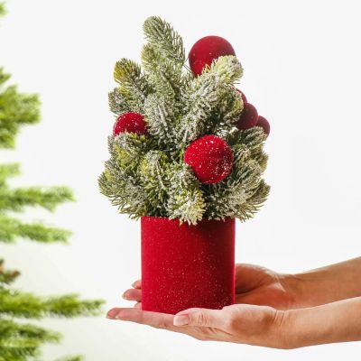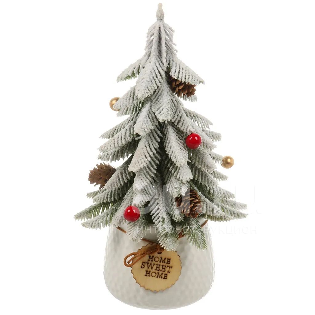 Елка новогодняя настольная, 29 см, ель, хвоя литая, заснеженная, с декором, Y4-9431