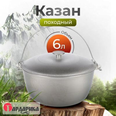 Казан походный литой алюминий Kukmara 5 л с крышкой-сковородой: универсальное решение для приготовления на огне, даче и дома. Надёжность, объём, удобство.