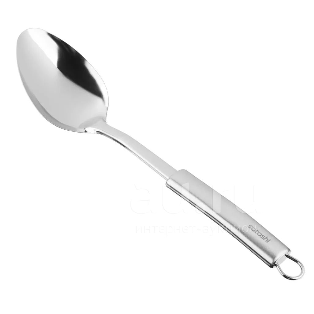 Ложка поварская Satoshi Альфа 33х7 см — нержавеющая сталь, долговечность и стиль для вашей кухни, подходит для дома и дачи, выгодная цена.