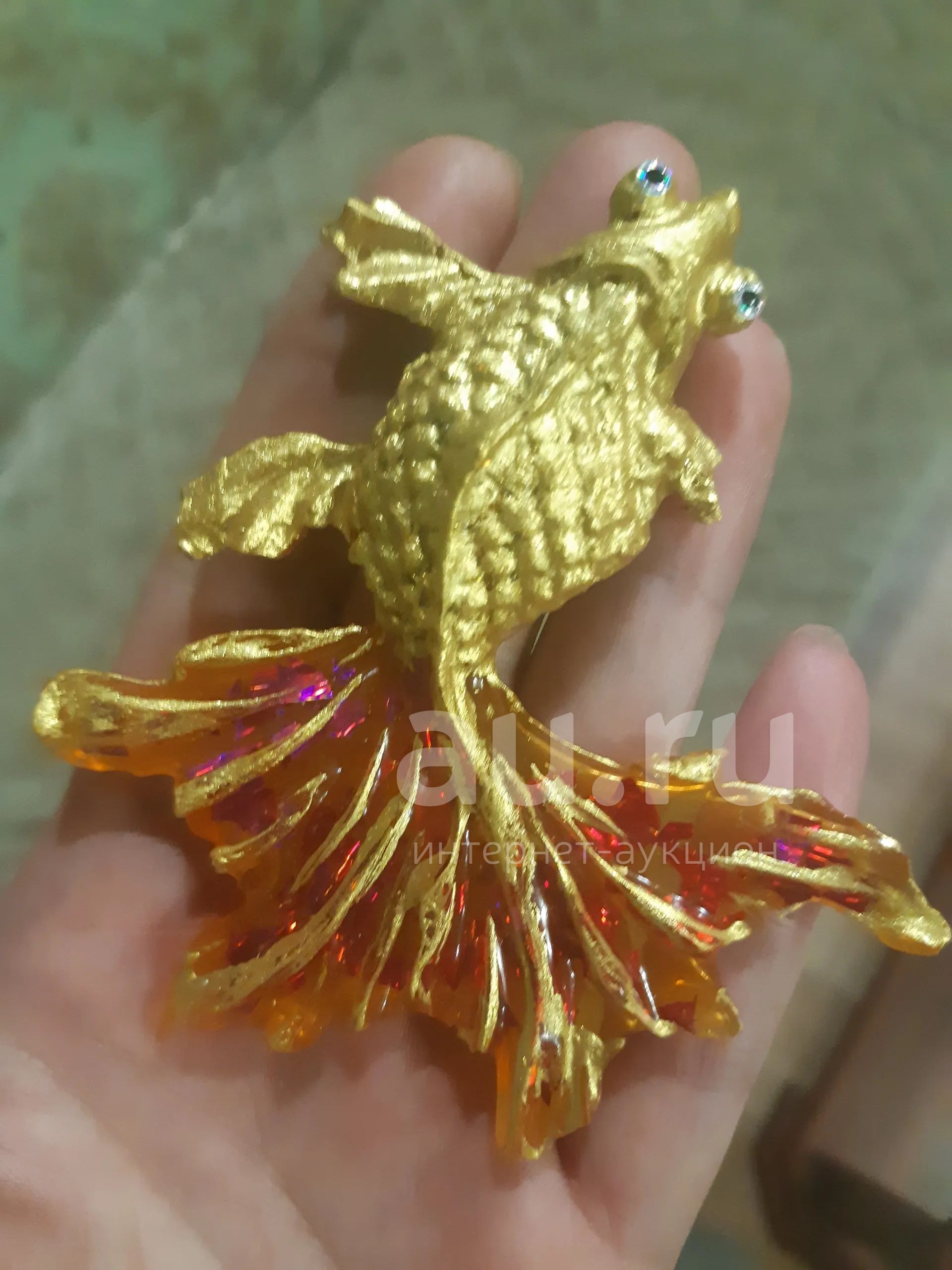 Золотая рыбка из эпоксидной смолы, покрытая золотой поталью 18 карат.