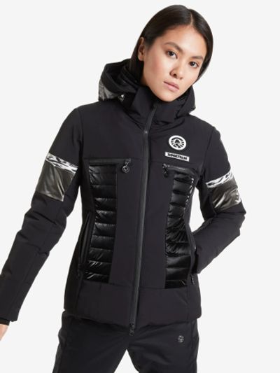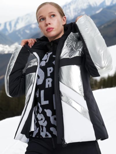 Стильная и функциональная горнолыжная куртка от Sportalm — это уникальная модель, украшенная бахромой. Капюшон и карманы декорированы окантовкой из стразов. А чтобы вы наверняка были ярче всех, куртка выполнена из блестящей ткани. Левый рукав дополнен фирменной металлической нашивкой Sportalm. Мембрана не пропускает влагу внутрь, но при этом отводит ее излишки изнутри модели. Водонепроницаемые молнии и водоотталкивающая пропитка усиливают защиту. Показатели водонепроницаемости и паропроницаемости: 5000 мм / 5000 г/м2/24 ч. Рукава дополнены внутренними манжетами и отверстиями для большого пальца. Двусторонняя молния позволяет расстегивать куртку как сверху, так и снизу. Кулиска по низу дает возможность подогнать посадку под себя. Капюшон, совместимый со шлемом, также можно отрегулировать. К непростым погодным условиям лучше подготовиться заранее. Ветрозащитная вставка не позволит непогоде нарушить ваши планы. Система RECCO состоит из 2 элементов: стационарного радара и датчика-отражателя, вшитого в правый рукав. Если вы попадете под лавину в зоне действия радара, датчик поможет спасателям быстрее найти вас. Волокна синтетического наполнителя надежно удерживают нагретый телом воздух. Куртка подходит для температуры до -30 °С. Важно: восприятие температуры индивидуально и зависит от активности и погодных условий. Все нужные мелочи можно положить в 4 кармана на молнии: внутренний, для ски-пасса, скрытый на левом рукаве и передний. Снегозащитная юбка — важный элемент экипировки райдера. Она не позволит снегу забиться под куртку, если вы вдруг упадете. При необходимости юбку можно отстегнуть.