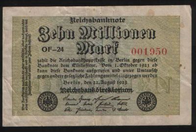 600руб.Банкнота Германии для железных дорог 10 млн 1923