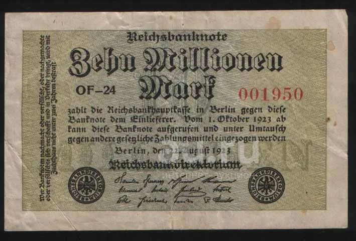 600руб.Банкнота Германии для железных дорог 10 млн 1923