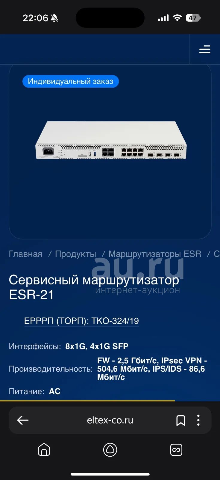 Межсетевой экран ESR-21 FSTEC A4, 8 10/100/1000BASE-T, 4 10/100/1000B...