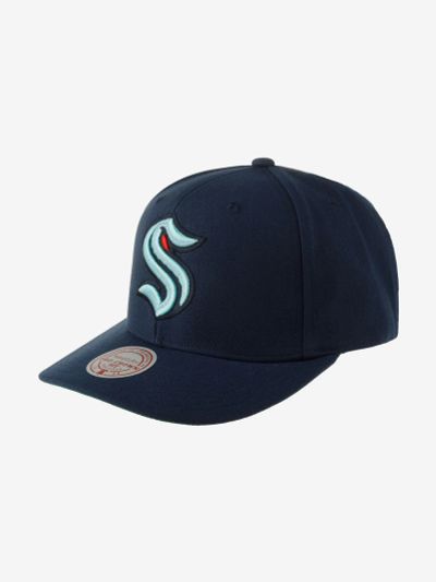 Темно-синяя бейсболка Hartford Whalers NHL от американской марки Mitchell And Ness. Модель со структурированным и слегка зауженным сверху куполом и чуть изогнутым козырьком выполнена из плотного полиэстера. На передней твердой панели — логотип профессионального хоккейного клуба "Хартфорд Уэйлерс". Команда выступала в Национальной хоккейной лиге (1979–1997) и Всемирной хоккейной ассоциации (1972–1979). Логотип команды сочетает в себе зеленую букву W с хвостом синего кита, создавая букву H в пространстве — в центре между двумя формами. Изнанка козырька зеленая. Размер регулируется с помощью пластиковой застежки. Сзади — белая вышивка с названием бренда. Внутри по окружности головы — лента для комфортной посадки. Изнаночные швы обшиты брендированной тканью. Глубина бейсболки 12 см, длина козырька 7 см.