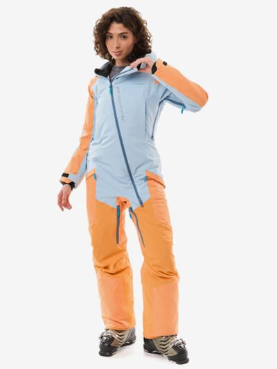 Утепленный женский зимний комбинезон с максимально удобной посадкой для горных лыж и сноуборда. Это обновленная версия Gravity Premium: комбинезон дополнен усилениями из плотной нейлоновой ткани в области коленей и низа спины, получил новую конструкцию ворота, появились планки на всех внешних карманах. Оснащен глубокими функциональными карманами. Максимально защищен от попадания снега внутрь. Все внешние молнии горнолыжного комбинезона влагозащитные, швы герметично проклеены. Рассчитан на катание зимой при температуре от 0 до −20 °С. Сшит из мембранной ткани Toray Delfy (Япония). За счет специального спортивного гидрофобного утеплителя "Слайтекс Премиум" (тело — 100 г/м2; капюшон, рукава, низ штанин — 60 г/м2) комбинезон пропускает пар и не впитывает влагу. Тело дышит даже при интенсивных нагрузках. Поверхность утеплителя термически обработана (каландрирована), что предотвращает миграцию волокон. Изнутри спинка утеплена мягкой тканью полибрушет. Функциональные характеристики — Высокий ворот. — Объемный капюшон сзади умеет утяжку, при необходимости может надеваться на шлем. — Центральная молния снабжена 3 замками. — Вентиляция под рукавами и с внутренней стороны штанин. — В рукавах — эластичные манжеты из лайкры с отверстием для большого пальца; в штанинах — снегозащитные "фонарики" с резинкой на кнопке для зацепа на ботинки. — Поперечная молния в нижней части спины ("бомболюк") позволяет легко и быстро открыть низ, не снимая при этом весь комбинезон. Молния укрыта внешним и внутренним клапаном. — Верх комбинезона можно снять: внутренние подтяжки с силиконовым нанесением позволяют комфортно расположиться в помещении. — Защитные вставки из прочной ткани в нижней части штанин. — 7 утепленных карманов: 5 внешних и 2 внутренних (в том числе для телефона). — Салфетка из микрофибры в нагрудном кармане для протирания маски (отстегивается). — Петля под тангенту рации. — Светоотражающие элементы.