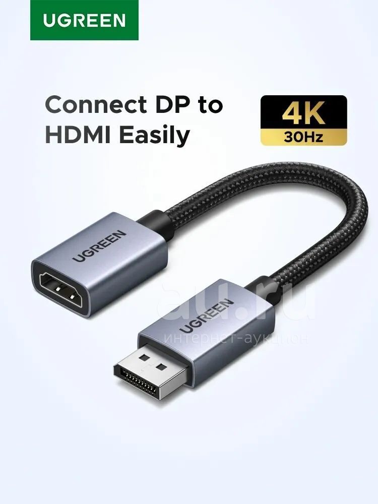 Кабель UGREEN DP133 (65982) DisplayPort to HDMI 4K Cable 2шт, 20см, серый космос