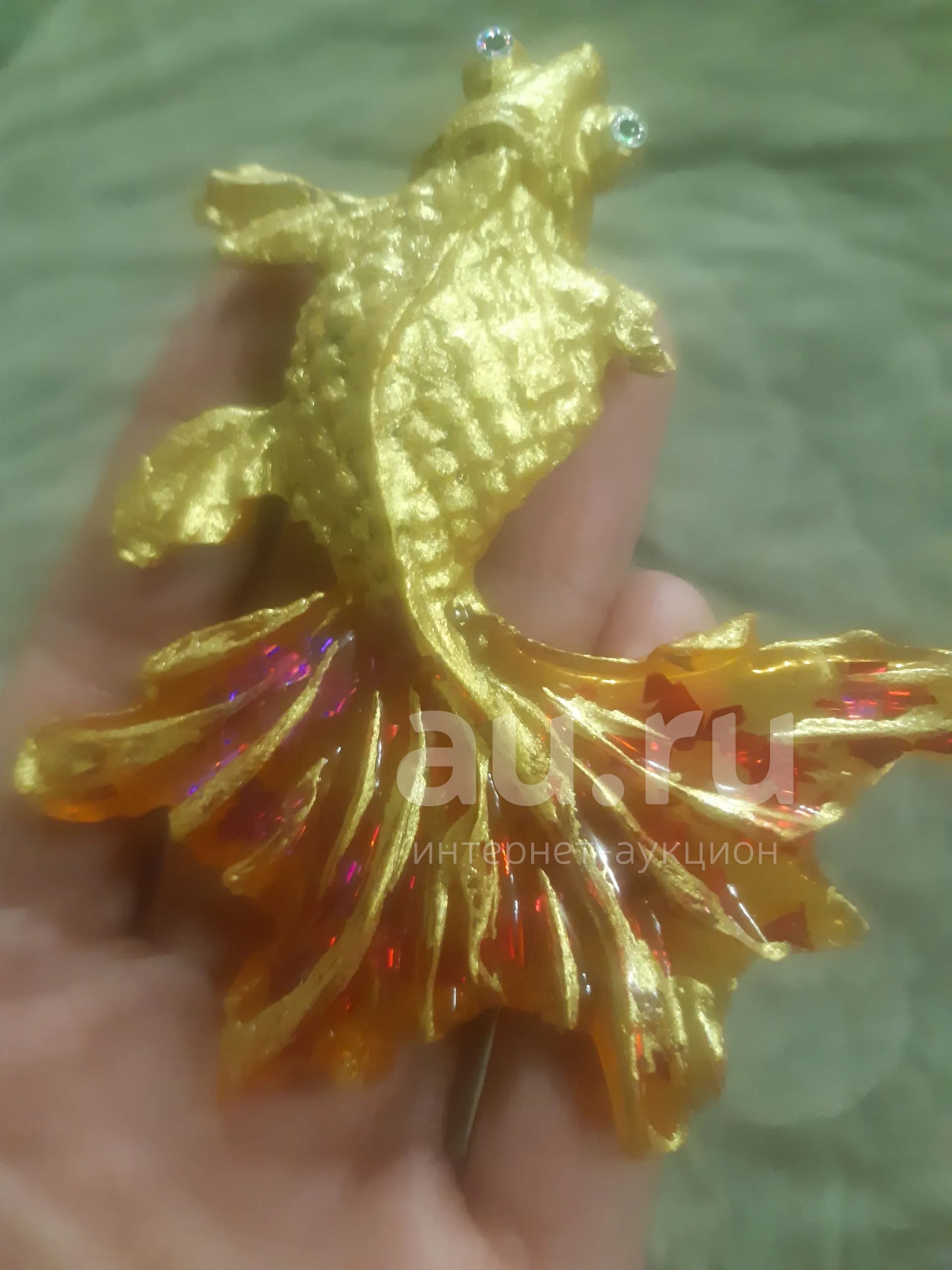 Золотая рыбка из эпоксидной смолы, покрытая поталью 18 карат.