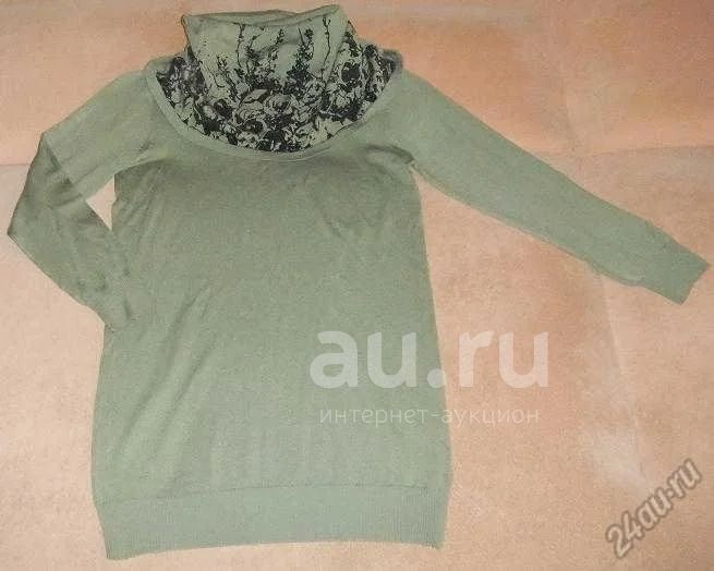 Туника трикотажная(мелкая вязка) оливковая с большим воротом-хомут.