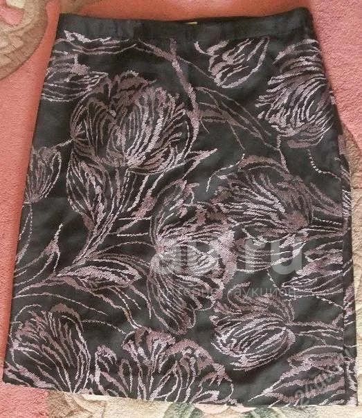 Шикарная юбка черная с вышивкой шелком цв.лаванда