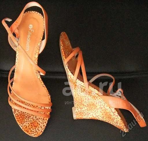 Легкие, открытые босоножки из натур.кожи,оранжевый + леопардовый, танкетка-шелк.ткань.