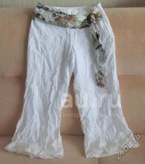 Летние брючки-капри из тонкой ткани на тонком,трикотажном подкладе из хлопка, низ брюк выполнен по типу-тюльпан и немного расклешен,пояс декорирован двойным,цветным поясом, который вставляется в кольцо, можно регулировать и драпировать на свое усмотрение.