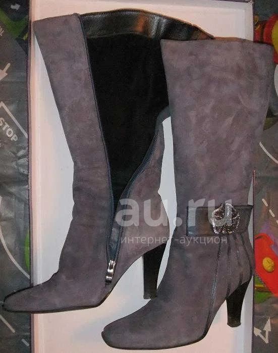 Замш.сапоги серо-сиреневый цвет(37-37,5)б/у 2раза
