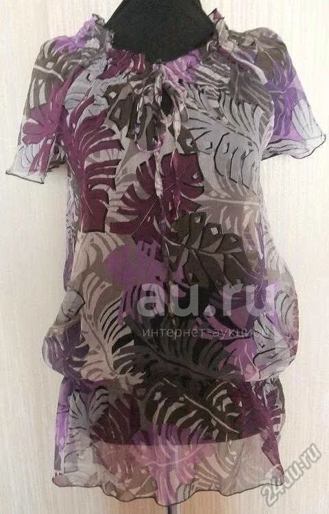 Воздушная туника из жатой, прозрачной ткани в пальмовые листья.