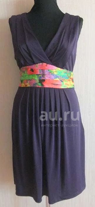Шикарное фиолетовое платье с цветным поясом. 48-50