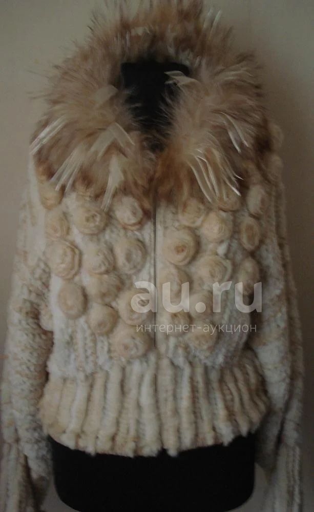 Шикарная,вязаная куртка из нежнейшего,бархатистого меха шиншиллового кролика.Воротник-богатый енот, воротник декорирован капроновыми ленточками. Длина куртки-55см., рукав-летучая мышь, длина рукава(от горловины)-77см.В манжет и пояс ввязаны шляпные резиночки, что создает идеальную посадку на любую фигуру.
