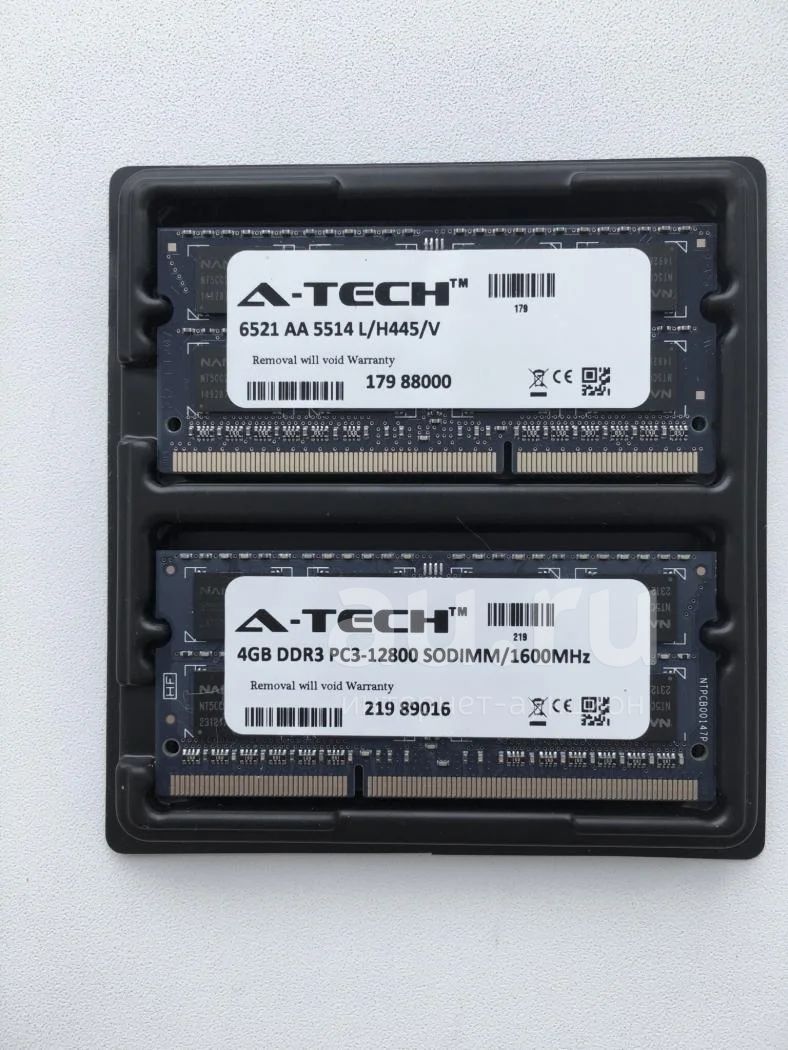 Продаю два модуля памяти A-TECH по 4Gb DDR3 PC-12800 SODIMM/1600MHz. 204 контакта. Идеальны для апгрейда MacBook Pro 2012 модельного года.