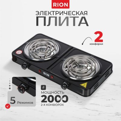 Плита электрическая Rion, 2000 Вт, 2 конфорки, спираль, эмаль, механическая, переключатель поворотный, черная