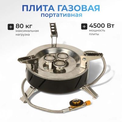 Плита газовая портативная 1 конфорка, 12х11 см, для резьбовых баллонов, металл, черная, C020033