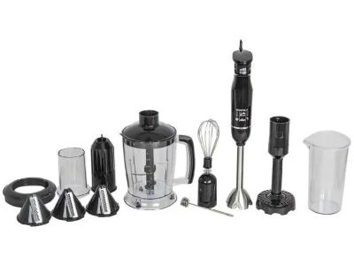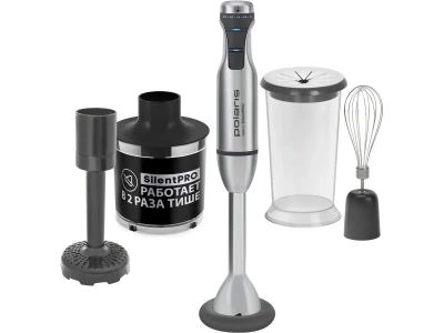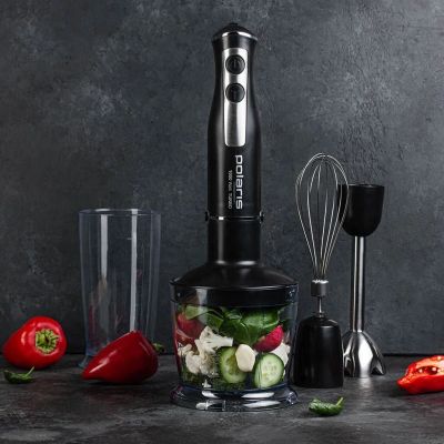 Блендер погружной 1000 Вт, 2 скорости, стакан, венчик, измельчитель, Polaris, PHB 1065, черный