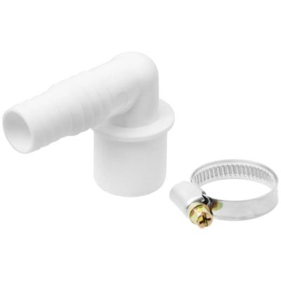Штуцер для сливных шлангов, 19/22х32 мм, угловой, с хомутом, индивидуальная упаковка, MasterProf