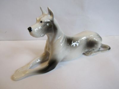 Бультерьер белый с черным пятном,авт. керамика,Вербилки