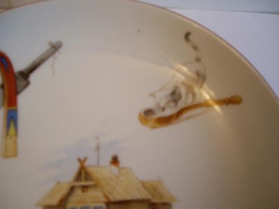 Тарелка настенная Русский лубок Наездник на петухе Фарфор