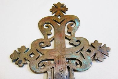 Процессионный эфиопский крест Хавария (росток Апостола), медь, 21,5*11,5 см, XX век, (реплика креста XVв)Эфиопия.