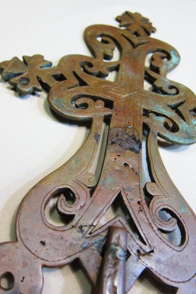 Выносной крест эфиопской коптской церкви "Лалибела" XX век, 30*8,5 см, медный сплав, Эфиопия. Африка.